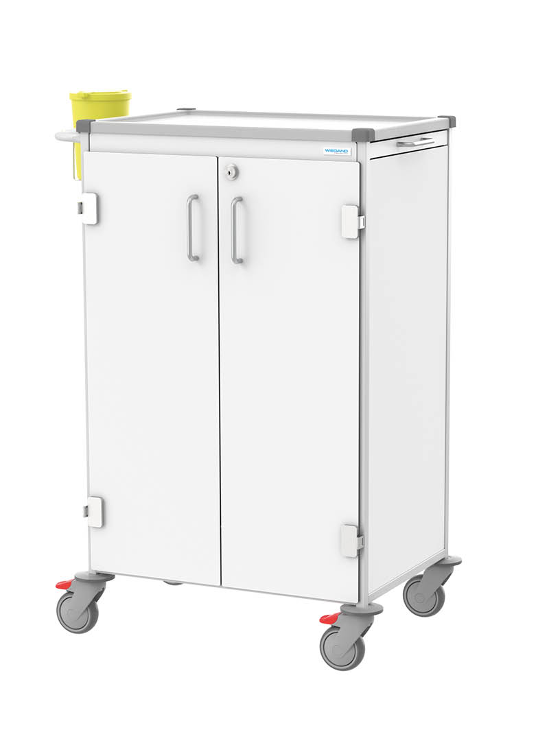 Combine drawers and shelving profiles according to your needs. Design your medication trolley to complement your workflow – whether you require an additional drawer, a lockable drawer for controlled substances behind a lockable door, or just a shelving profile – the WIEGAND medication trolley adapts flexibly to your daily tasks.