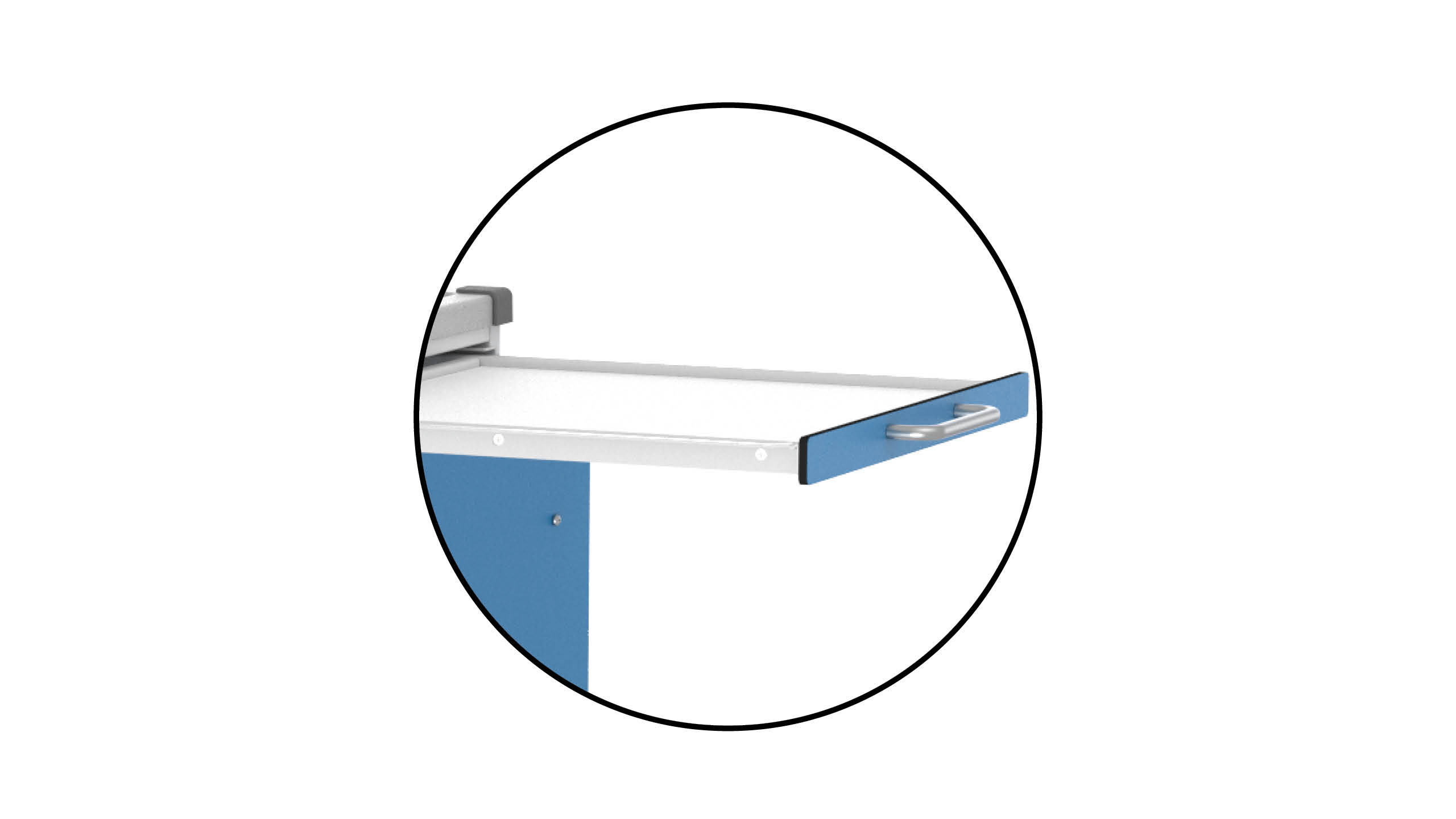 Equip your weekly system trolley with an extra side-mounted pull-out work surface. A side frame with a tray inserted offers more space for preparation, checking or documentation – exactly where you need it. This gives you an extended, practical workspace in addition to the TopModule.