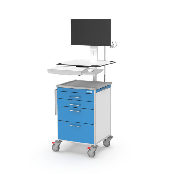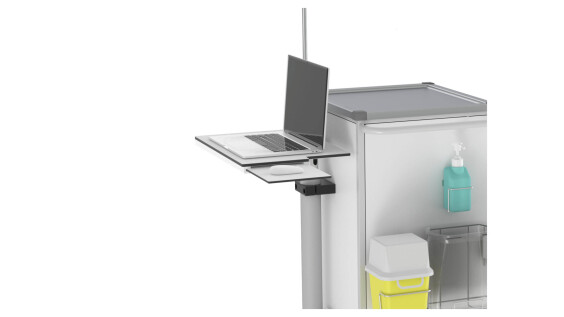Verwenden Sie den Pflegewagen MAX als mobilen IT-Arbeitsplatz. Dafür stehen Ihnen maßgeschneiderte Energiesysteme zur Verfügung – passend für Thin Clients, Laptops und weitere Geräte. Alternativ können Sie auf den Onyx All-in-One-Computer setzen: ein leistungsstarkes, medizinisch zertifiziertes System (EN-60601), das Rechner und Monitor in einem kompakten, leicht zu reinigenden Gehäuse vereint – hygienisch, desinfizierbar und optimal integriert.