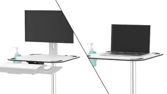 Der Visitenwagen LIGHT kann individuell ausgestattet werden, so wie Sie ihn brauchen. Flexibel mit einem Laptop oder einem All-in-One-Computer ausgestattet, passt er sich so unterschiedlichen Arbeitsanforderungen an. Dank des universellen VESA-Monitorhalters, der kompakten Tastaturhalterung und der beidseitig nutzbaren Mausablage sind Sie ideal auf die digitale Dokumentation vorbereitet.